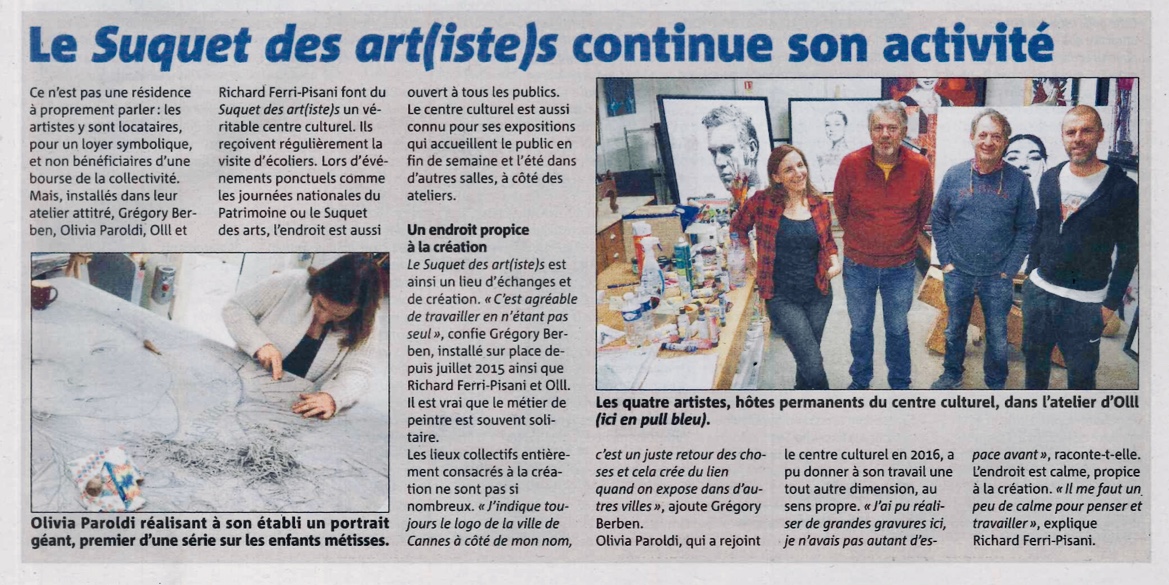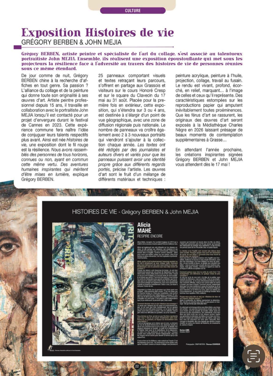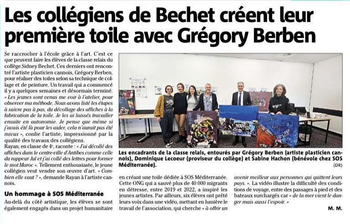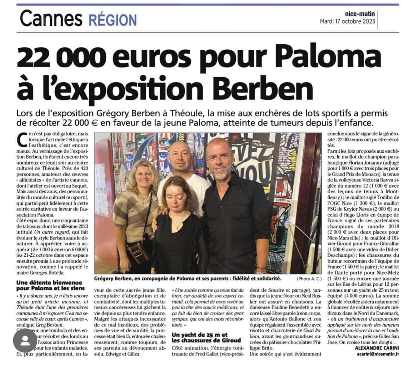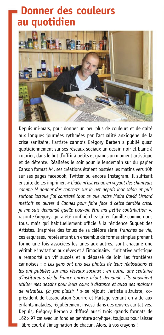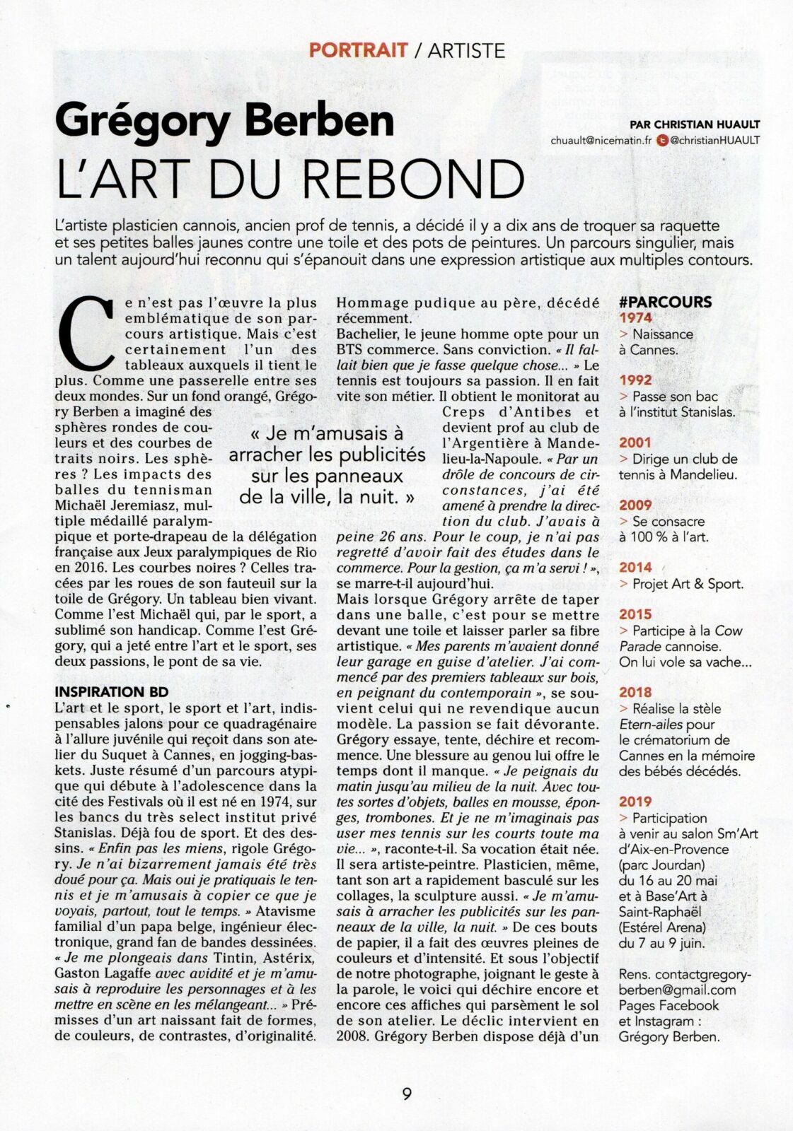 Partageant avec Gregory BERBEN une passion commune pour le sport, j’ai toujours apprécié son esprit conjuguant plasticité moderne et mouvement des couleurs. Artiste vif au contact de différentes matières, ses œuvres sont empreintes de cultures urbaines. Son univers fascinant, hérité du Pop’Art, mérite un écho et un suivi que je recommande à tous les Cannois, amoureux de peintures singulières aux contrastes saisissants.