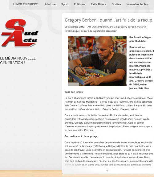 Véritable coup de cœur pour cet artiste singulier qui a l’art de vous transporter dans son univers atypique et coloré ! Quel travail, quelle passion et quelle énergie…De quoi être bluffé ! Pour ma part, suis totalement fan de la toile « Al dente », « Abbé Pierre », « Think different » et tant d’autres encore…sans oublier mon petit faible pour les casquettes 100% faites à la main ! Comment ne pas être impressionné par son inépuisable inspiration et ses centaines de toiles, peintures, collages, sculptures et compositions ? Conquise, je suis ! Un grand Bravo Greg Berben et continuez à nous faire vibrer encore et encore…