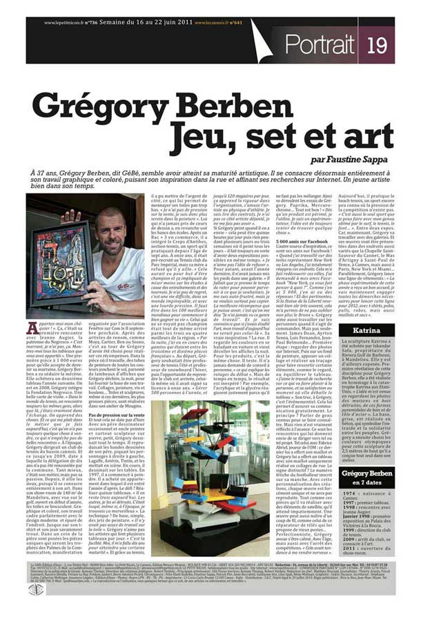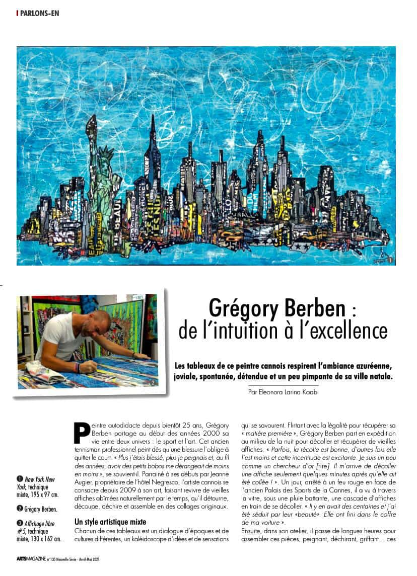 Gregory Berben possède la technicité, la vitalité et la créativité – bref le talent – qui font les vrais artistes. Son œuvre, esthétique et dynamique, est tout de suite identifiable. Sa personnalité est directe, sincère et engagée. En conclusion, il faut suivre Gregory Berben.