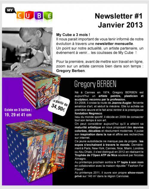 J’ai démarché Greg pour lui présenter un projet de « démocratisation artistique » qui consiste à détourner une œuvre d’art sur un support tridimensionnel à tarif unique : un cube en carton ! L’artiste ouvre ainsi son univers au plus grand nombre. J’ai rencontré un peintre autodidacte et éloigné des codes et références. Ses œuvres sont troublantes de détails pour une vision différente à chaque regard. My-Cube s’est aujourd’hui enrichi des créations intenses et colorées de Greg.