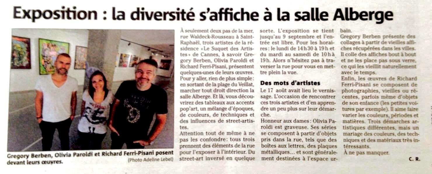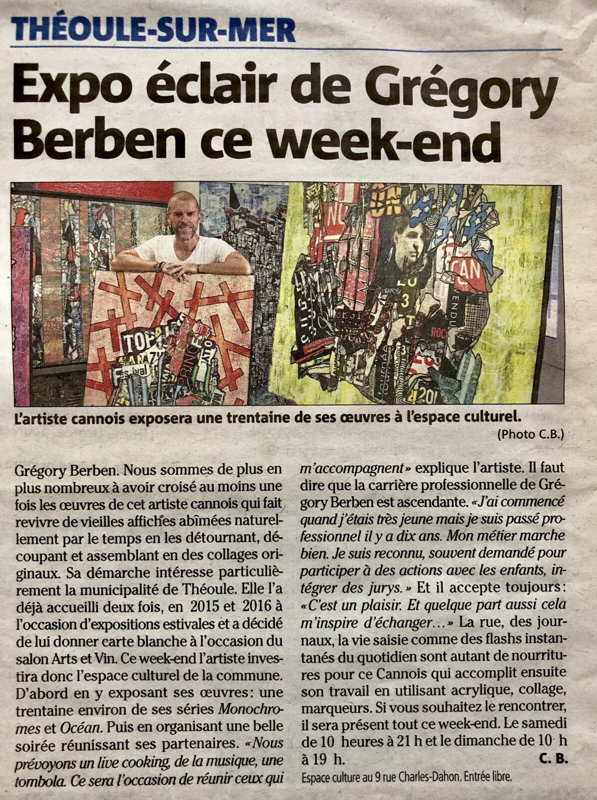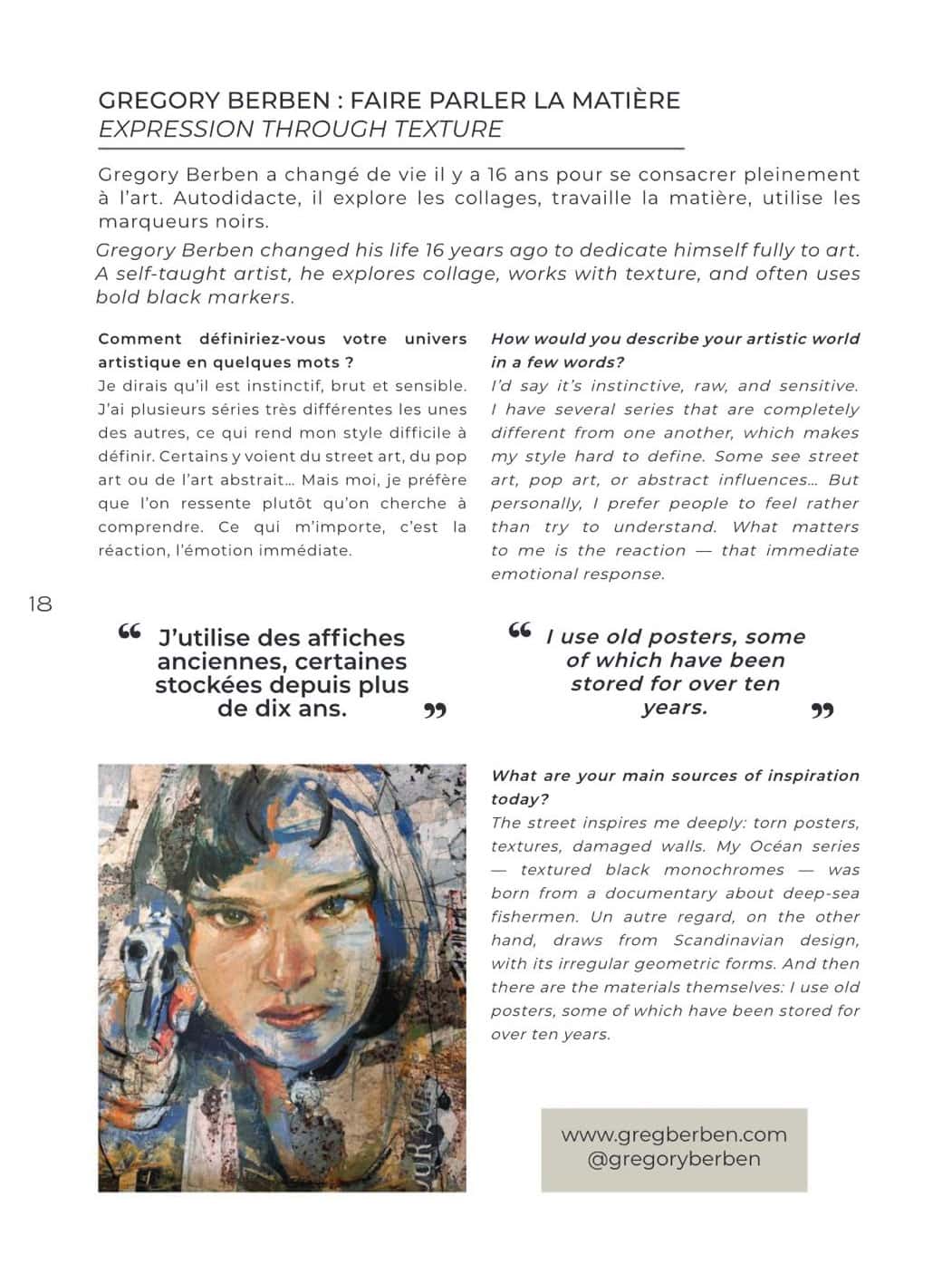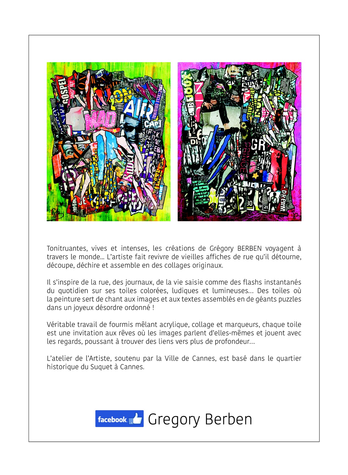 Gregory BERBEN fait partie de ma sélection d’Artistes. Ce qui me touche dans son œuvre ? Les couleurs, l’originalité, la variété de ses sujets et des matières. Peintures, collages, affiches…Gregory nous régale de toute la palette de son talent.