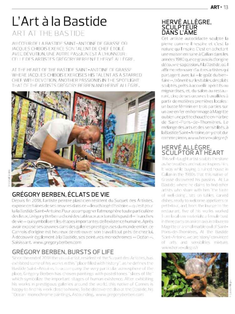 Difficile quand on n’est pas critique d’art, de parler de l’œuvre de Gregory BERBEN, mais quand on rentre dans sa galerie on s’y sent tout de suite bien, saisi ? Par la grande énergie de vie qui se dégage de ses œuvres, la couleur est partout, les toiles parlent, interrogent, répondent…Une cohérence totale avec l’artiste, un homme accueillant, heureux, débordant de vie et qui prend le temps…Qualité rare ! Les œuvres, l’artiste et le décor naturel environnant en total harmonie, un moment fort, intense, un lieu hors du temps qui donne envie de revenir souvent…